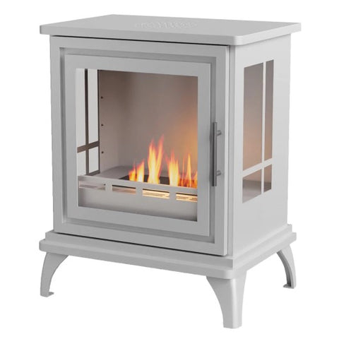 Nashville - Black & White Freestanding Bioethanol Stove Est Time Of Delivery: 1-2 Weeks Free UK Mainland delivery The Nashville is a medium-sized, freestanding bioethanol fireplace designed to resemble a classic wood-burning stove. Crafted from powder-coated steel with a sleek white finish, it exudes traditional charm while offering modern convenience. Its size makes it ideal to be placed inside a traditional fireplace hearth or fireplace surrounds where the flue connection has been closed off. Since it operates on bioethanol, it requires no flue or ventilation, making it a versatile addition to any home. Bioethanol Burner The manually operated bioethanol burner has a 1.5-litre fuel capacity, providing up to 6 hours of burn time per refill. The front glass door allows easy access for operating and refilling the burner, eliminating the need for electricity and ensuring a quick, hassle-free installation. #biowoodburner #logburner #biofires #woodbu